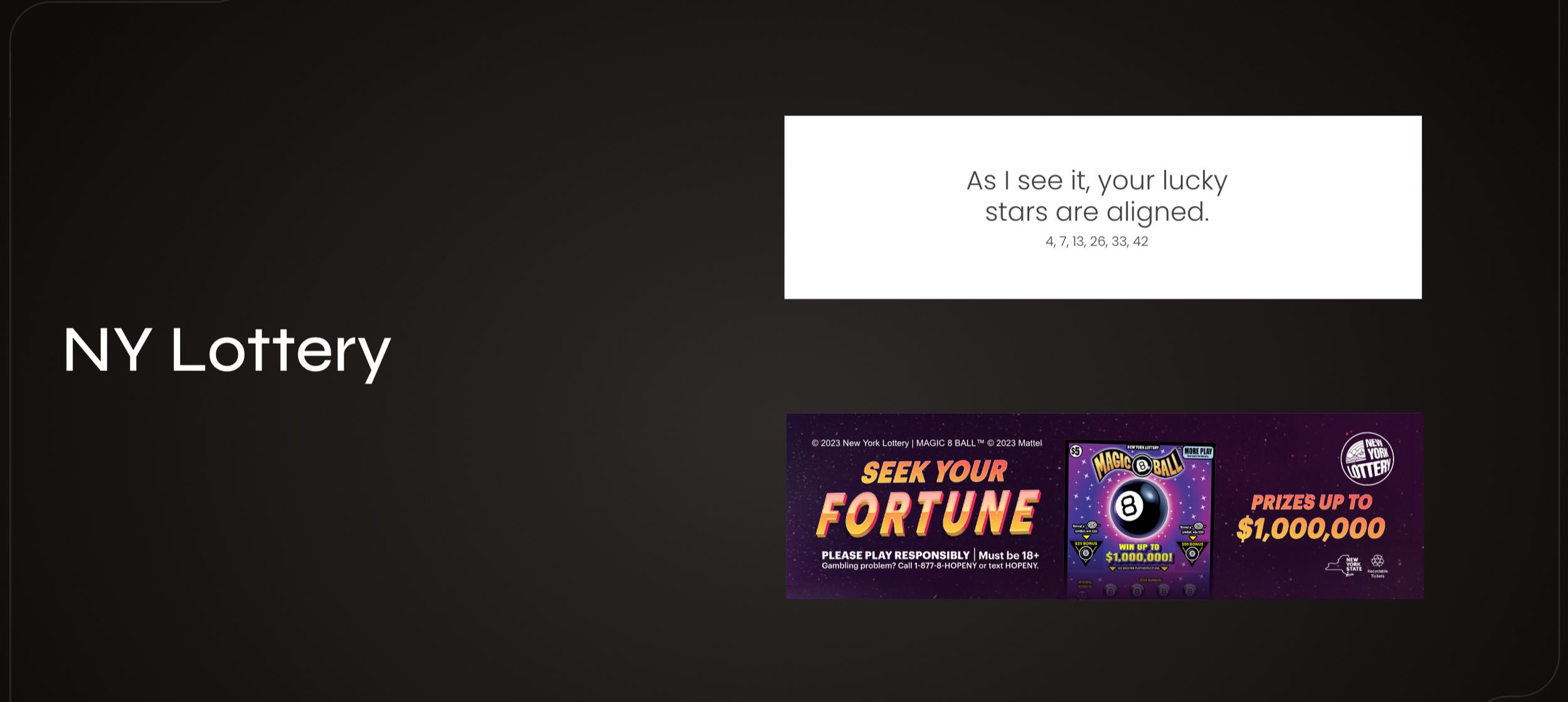 The New York Lottery wanted to market the launch of their brand new Magic 8 Ball ticket. What better way to predict ones future than via fortune cookie?